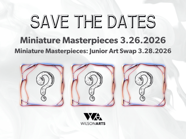 This year’s Miniature Masterpieces will be on display beginning early March in the Truist Event Gallery, with the fundraiser taking place on Thursday, March 26 from 6:00 - 8:00 p.m. We are also excited to be partnering with local art teachers to add a youth version into this year’s mix! Miniature Masterpieces: Junior Art Swap will take place on Saturday, March 28, from 4:00 to 6:00pm.