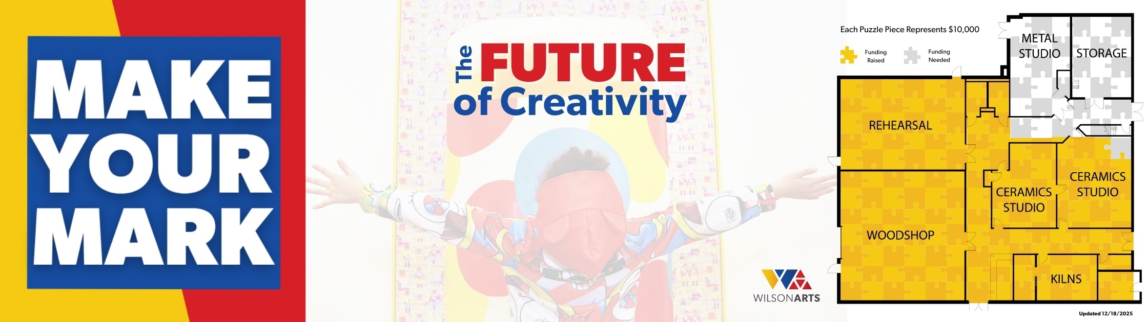 This 7,000 square foot addition will create a space where creativity, education, and innovation come together in Wilson! The Wilson Arts MakerSpace will include fully equipped workspaces for metalworking, ceramics, and woodworking, plus a mixed media studio, a rehearsal studio, and a dedicated and accessible entrance.